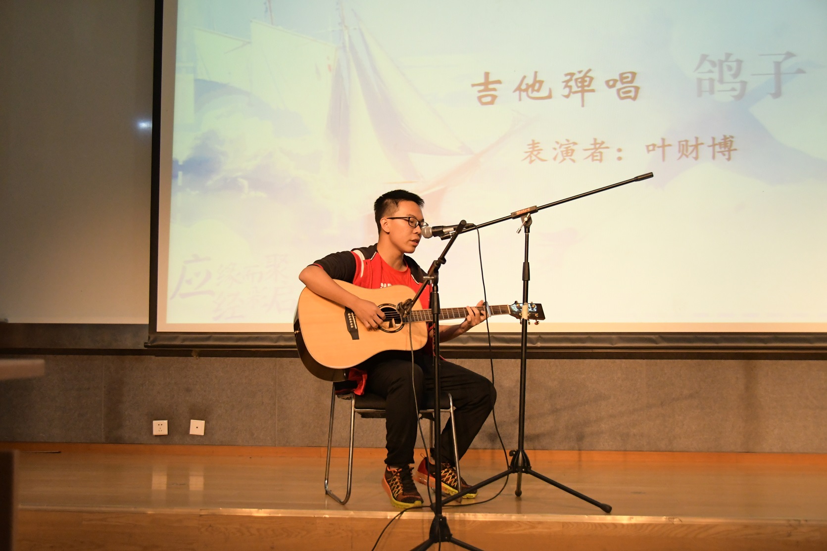 2019级新生叶财博同学为大家带来了一曲吉他弹唱——《鸽子》,唱出了青春特有的美好;由王悦阳带来的《make you feel my love》,让大家入迷沉醉。