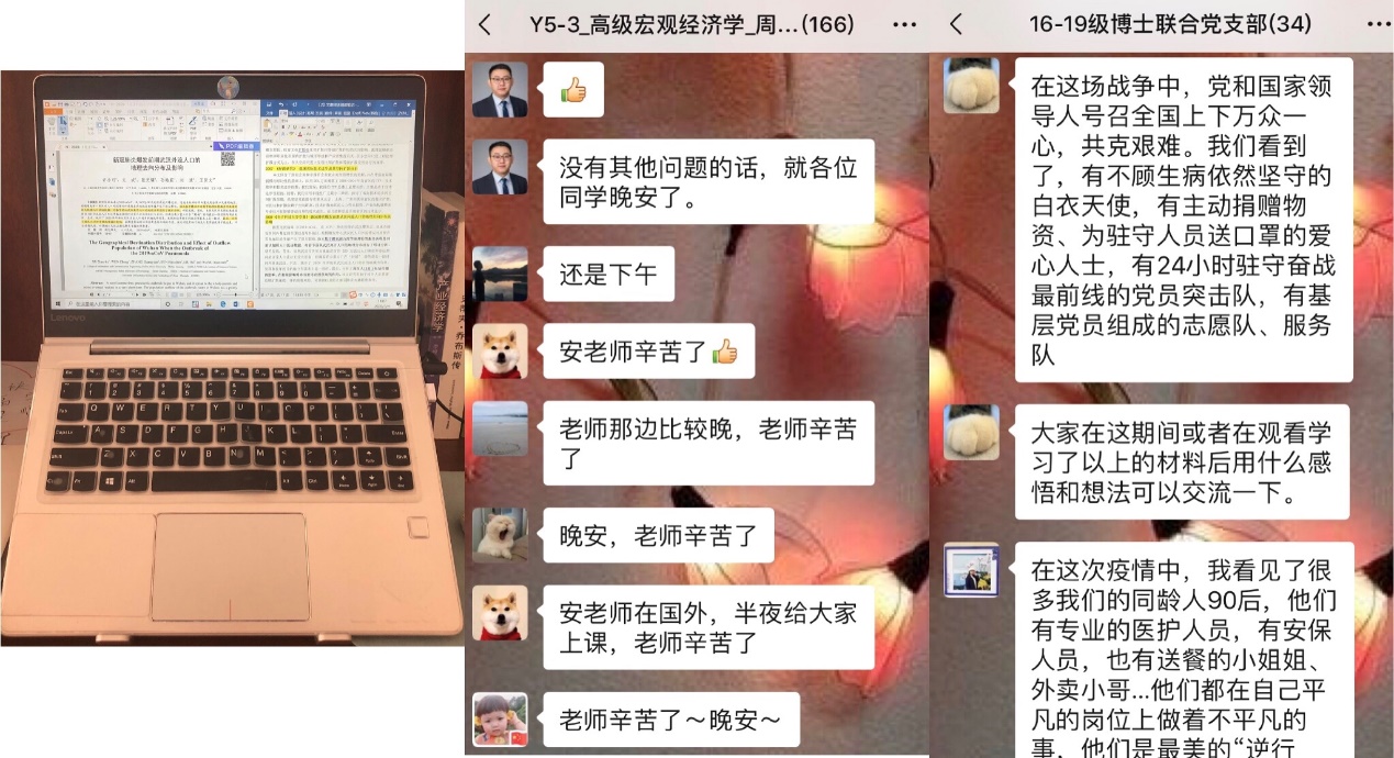 ——“安心”。疫情爆发以来,公司领导和老师们时刻牵挂着我们的身心健康和课程研习,从公司到导师组,从班集体到课程群,以及例行的党课教育活动都在时刻提醒我们特殊时期不忘“停课不停教、停课不停学、研学家中做”的重要理念,打消了我们无人指导,荒废时间的顾虑,为迎接正式开学后的学习打下良好基础。班级群内每日例行报告身体状况、导师的时刻关心和提醒、任课老师及助教的辛苦付出、党支部成员的团结一致都一一令我感动。虽然我们所有同学遍布在中国的大江南北,但是整个公司的努力让我有了一种强大的纪律感和组织感,帮助我在家中尽量做到自律,提高学习效率。