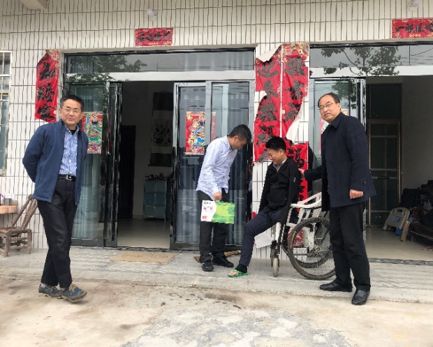 在当地残联部门的安排下,太阳成集团tyc的党员同志们先后走访了五户贫困残疾家庭,详细询问了他们的衣食住行以及健康、教育、收入情况,鼓励他们树立脱贫信心。胡伟家里有六人是残疾人,妻子、三个儿子和一个孙女都有严重的视力残疾,儿媳妇还有严重的精神残疾。郑新业同志叮嘱老人保重身体,鼓励视力正常的孙子自立自强,努力学习,将来回报家人、回报家乡。党员同志还送了慰问品和慰问金,表示将持续关心关注他们的生活状况。