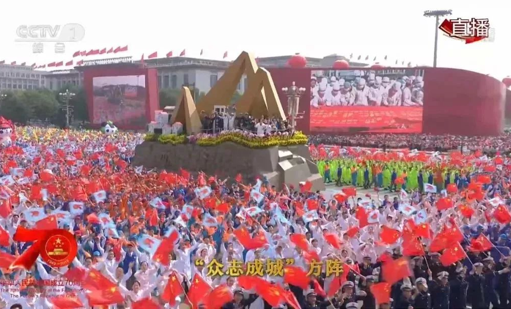我们在庆祝中华人民共和国成立70周年的现场,广泛参与群众游行方阵、天安门广场合唱和联欢晚会、志愿服务保障等各方面工作,为祖国母亲深情献礼。