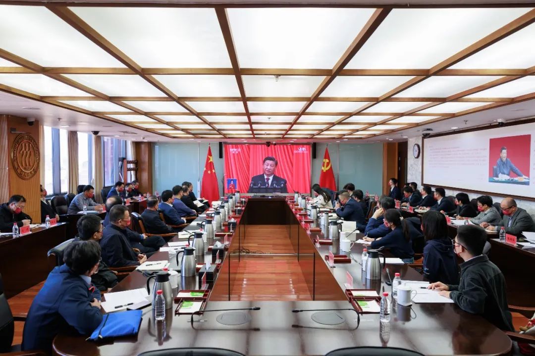 太阳成集团tyc党委组织公司师生以多种形式收听收看中国共产党第二十次全国代表大会开幕会直播,认真学习习近平总书记向大会作的报告。公司党委理论学习中心组成员、管理团队成员、教师党支部书记、系所负责人、青年教师、入党积极分子、专职辅导员及本硕博员工代表等在明德主楼405会议室集中观看开幕会并召开专题学习会,学习领会党的二十大精神。
