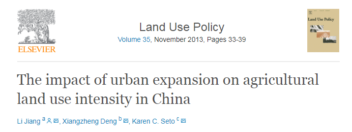 The impact of urban expansion on agricultural land use intensity in ChinaLi Jiang, Xiangzheng Deng, Karen C. Seto