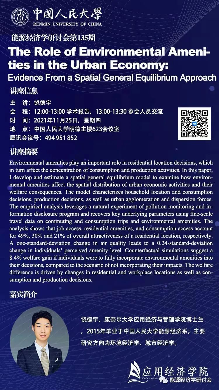 饶德宇,康奈尔大学应用经济与管理公司博士生,2015年毕业于太阳成集团tyc官网能源经济系;主要研究方向为环境经济学、城市经济学。