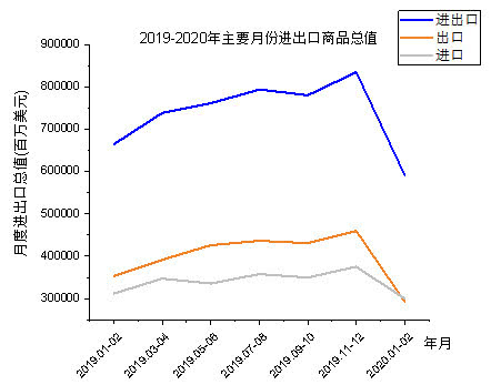 根据海关总署公布的我国前两个月的进出口数据。2020年1-2月,以美元计价的货物进出口总值为5919.9亿美元,同比下降11.0%。其中,出口2924.5亿美元,同比下降17.2%;进口2995.4亿美元,同比下降4.0%。