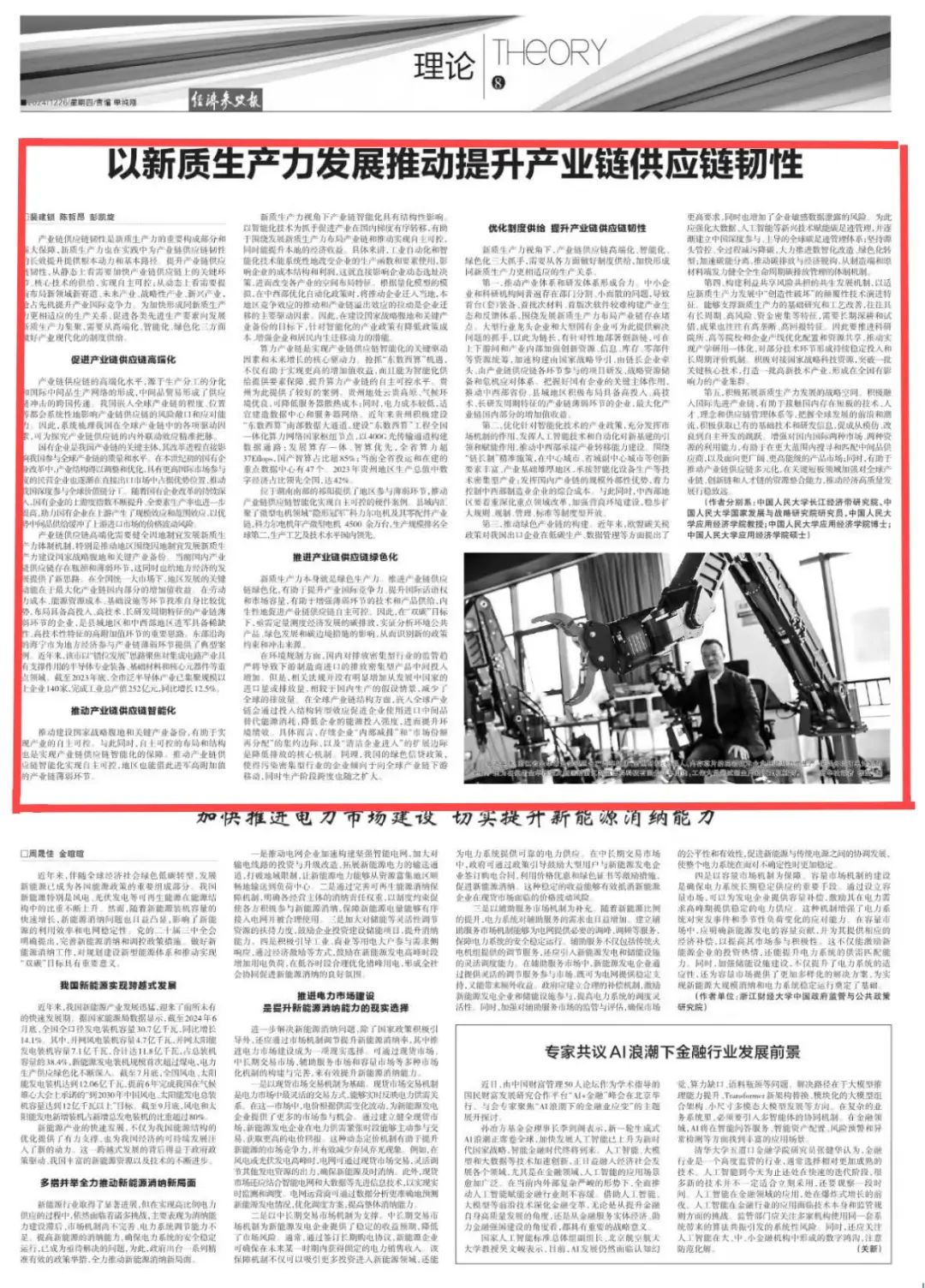 新质生产力视角下,产业链供应链高端化、智能化、绿色化三大抓手,需要从各方面做好制度供给,加快形成同新质生产力更相适应的生产关系。