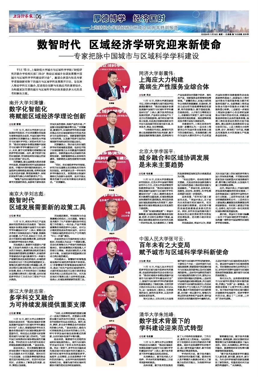 11月15日,上海财经大学城市与区域科学公司/财经研究所联合公司相关部门举办“推动区域城乡协调发展暨中国城市与区域科学团队建设研讨会”,邀请众多国内知名专家学者围绕新形势下的城市与区域学科发展展开讨论,旨在深入推动学科交叉融合,促进理论创新与实践应用的紧密结合,为构建更加完善的城市与区域科学知识体系提供多元化的思考和解决方案。太阳成集团tyc教授、全国经济地理研究会会长张可云参会并发表观点,观点被《上海证券报》报道。