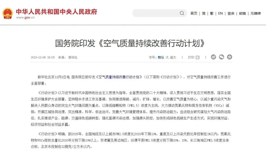 国务院日前印发的《空气质量持续改善行动计划》(下称《行动计划》)提出,以改善空气质量为核心,以减少重污染天气和解决人民群众身边的突出大气环境问题为重点,以降低细颗粒物(PM2.5)浓度为主线,大力推动氮氧化物和挥发性有机物(VOCs)减排。