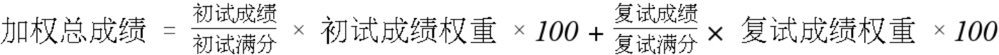 (2)对各项复试成绩合格的考生,将复试成绩与初试成绩加权求和,排列录取顺序。初试成绩权重为60%,复试成绩权重40%。