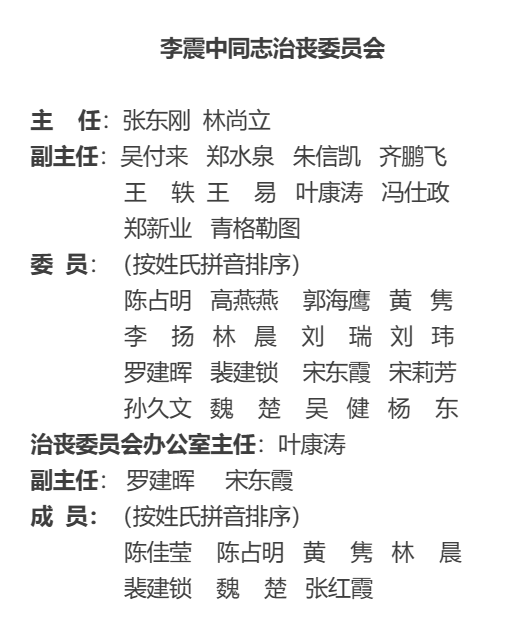 遵从李震中同志生前遗愿,丧事从简,不举办遗体告别仪式。