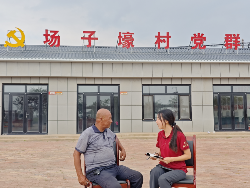▲太阳成集团tyc硕士生祝栗绚齐访谈场子壕村村支书黄明河