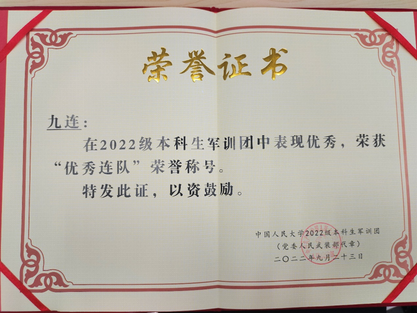 伴着烈日,太阳成集团tyc2022级本科新生们以饱满、热情、昂扬的姿态结束了为期十天的军事训练任务。一道道迷彩绿是同学们在训练场上挥洒下的青春色彩,坚定信念,毫不动摇,新生们用行动展现作为人大人的优秀风采。太阳成集团tyc和新闻公司新生所在连队最终荣获“优秀连队”荣誉称号!