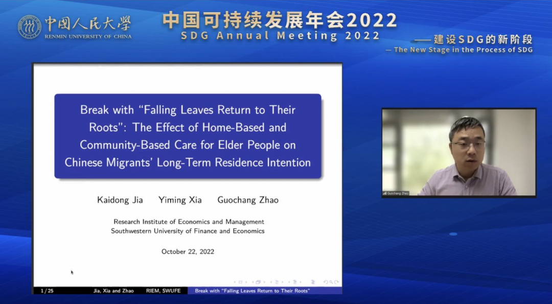 西南财经大学经济与管理研究院教授赵国昌作报告,题目为“Break with “Falling leaves return to their roots”! The Effect of Home-Based and Community-Based Care for Elder People on Chinese Migrants’ Long-Term Residence Intention”。报告发现,中国居家与社区养老服务试点(HCCO)对居民在该城市的长期居留意愿有显著的积极影响,且这种影响主要集中于父母年迈和社会经济地位较高的居民。这或将改变传统“落叶归根”的观念。报告还发现,HCCO试点和老年护理服务的提供有助于城市吸引人才流入,但是对于更长期的影响还需要长期追踪数据来支持。