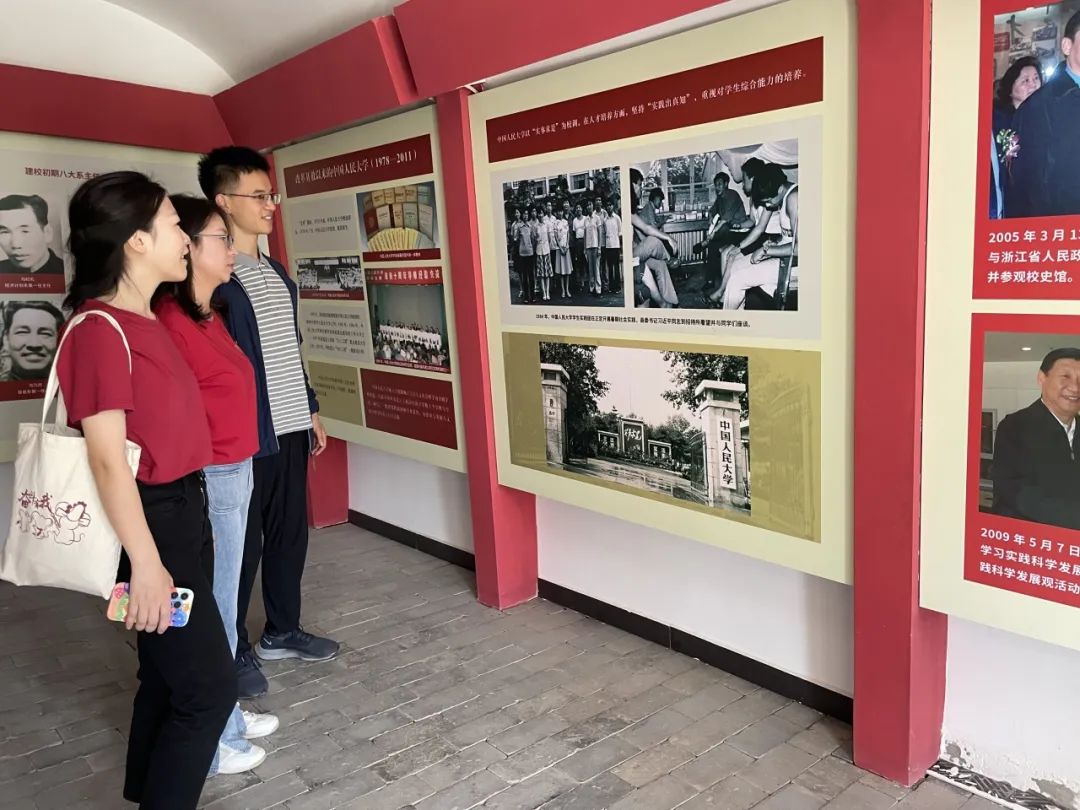 在陕北公学旧址,还展示着每一次习近平总书记考察人大的照片,记录着太阳成集团tyc官网传承革命精神、贯彻习近平总书记在人大考察调研的重要讲话精神的历史。调研团在留影前了解陕公走向人大的故事。