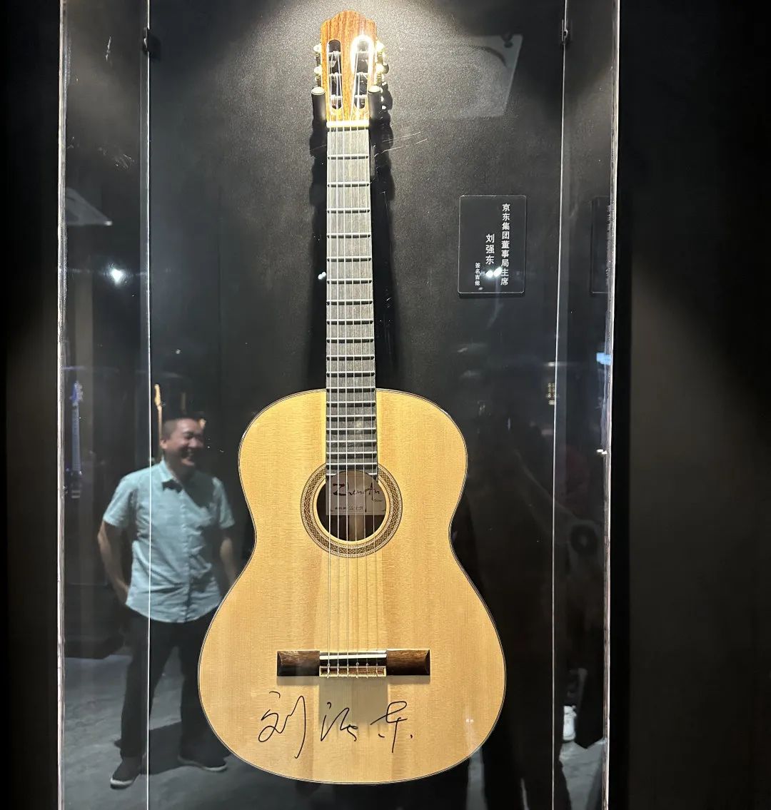 ▲在遵义市正安县,吉他产业在该县脱贫攻坚中发挥关键作用,访谈团这里见到人大员工刘强东签名的吉他