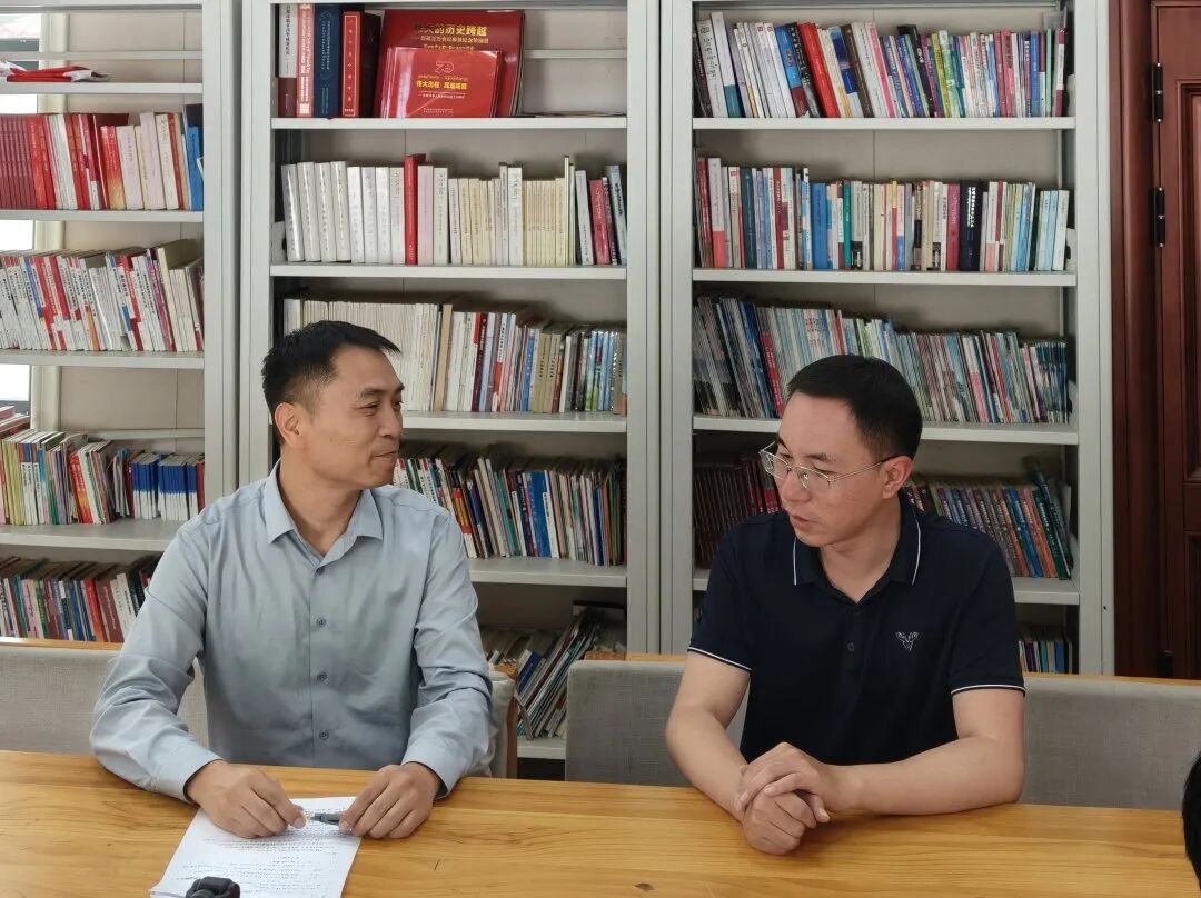 ▲太阳成集团tyc陈占明教授访谈白马镇党委书记刘旭