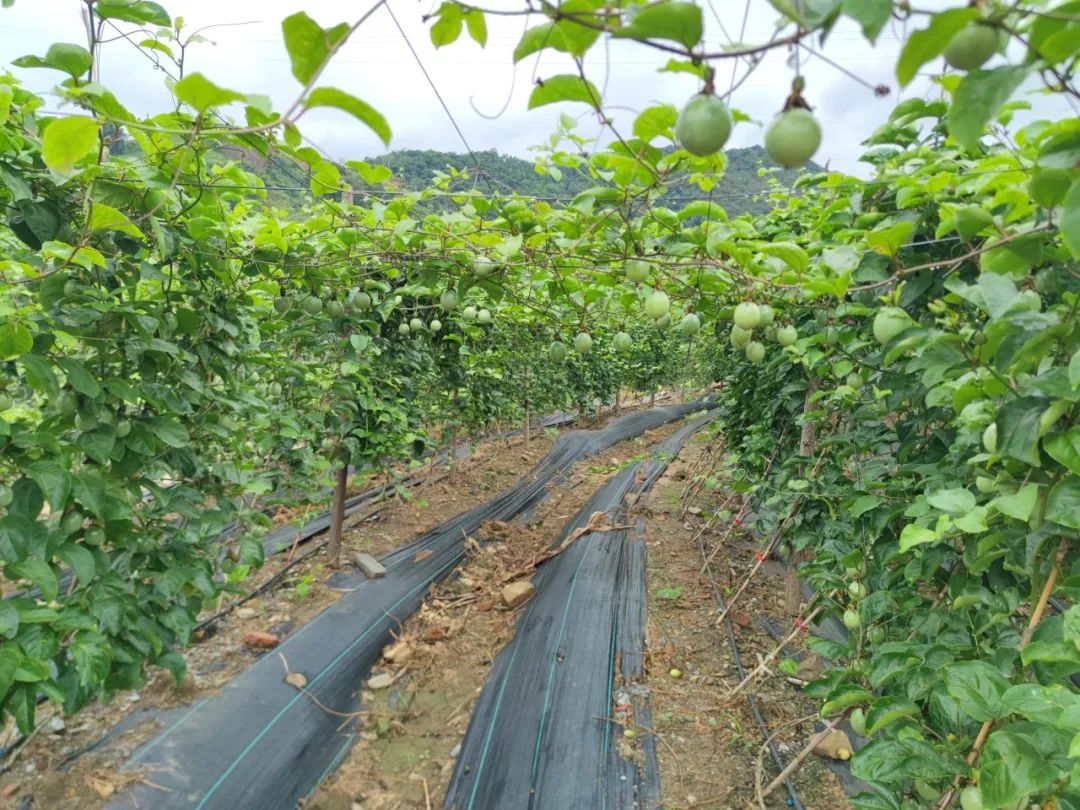 在新丰村党支部书记熊章乐的带领下,调研团参观了西林县仁鼎农业有限公司所承包的百香果园区。目前,仁鼎农业有限公司在村内流转土地150余亩,用于种植优质品种百香果“钦果九号”。公司负责人王仁为调研团介绍了园区基本情况和百香果的种植流程。目前,该园区首批上市的百香果亩产2000斤,全年亩产可达5000余斤,收购价在10元左右。村民可获得土地流转租金,还能在百香果园区就近务工,每日可获得不低于130元的收入;据王仁介绍,公司已带动村内百余人就近务工,每天需要的劳动力至少有二三十人。在百香果等产业的带动下,新丰村去年人均纯收入为2.6万元,已经远高于贫困线。