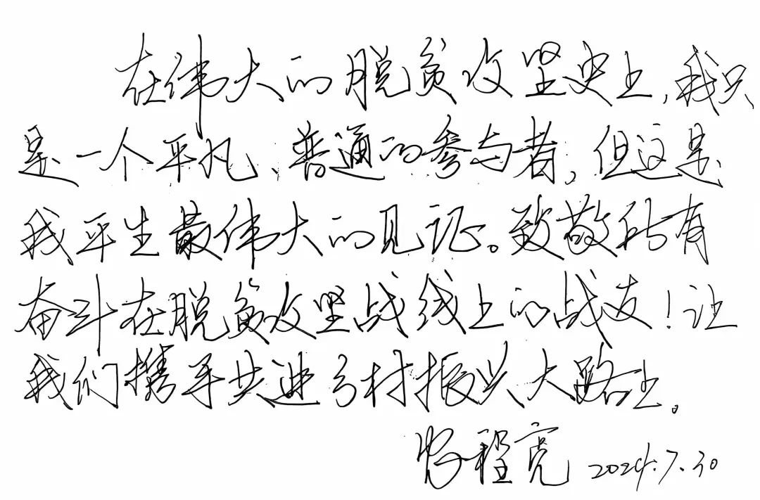 ▲新丰村党支部书记熊章乐给“832工程”的留言