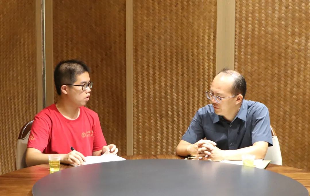 ▲梁振宇访谈西林县八达镇党委书记农程亮