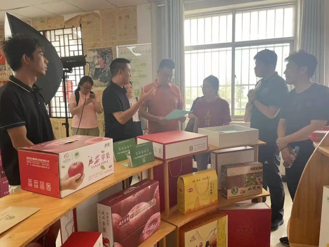随后,访谈团到达七里村街道管村,调研认养农业平台开发建设项目。延长县管村在证监会中金所定点帮扶帮助下积极探索“果树认养”生产新模式,以VR实景展示、24小时在线直播和一对一管家式服务等方式让消费者深度参与到农业生产过程,以绿色食品的“私人订制”打通农产品销售的“最后一公里”,成功实现了农业生产的“产供销”向“销供产”模式的转变。目前,管村120户果农的494亩新品种矮化密植果园已经全面纳入延长认养农业管理体系。果农可通过土地流转、果树承包和入企务工等多渠道融入“认养农业”,变“资源”为“资产”,实现亩均收入翻一番。