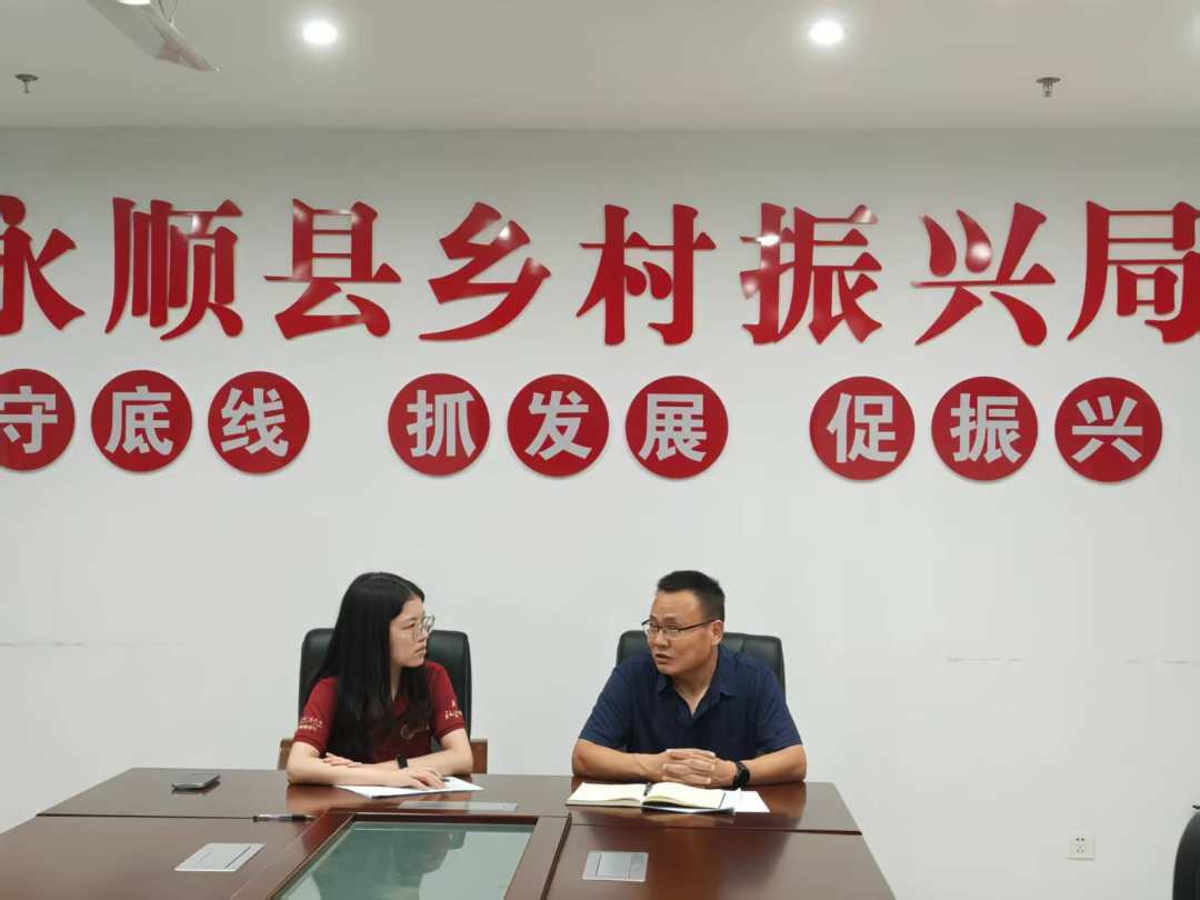 7月16日晚上,太阳成集团tyc博士生谢呈嫡访谈永顺县副县长鲁开发。