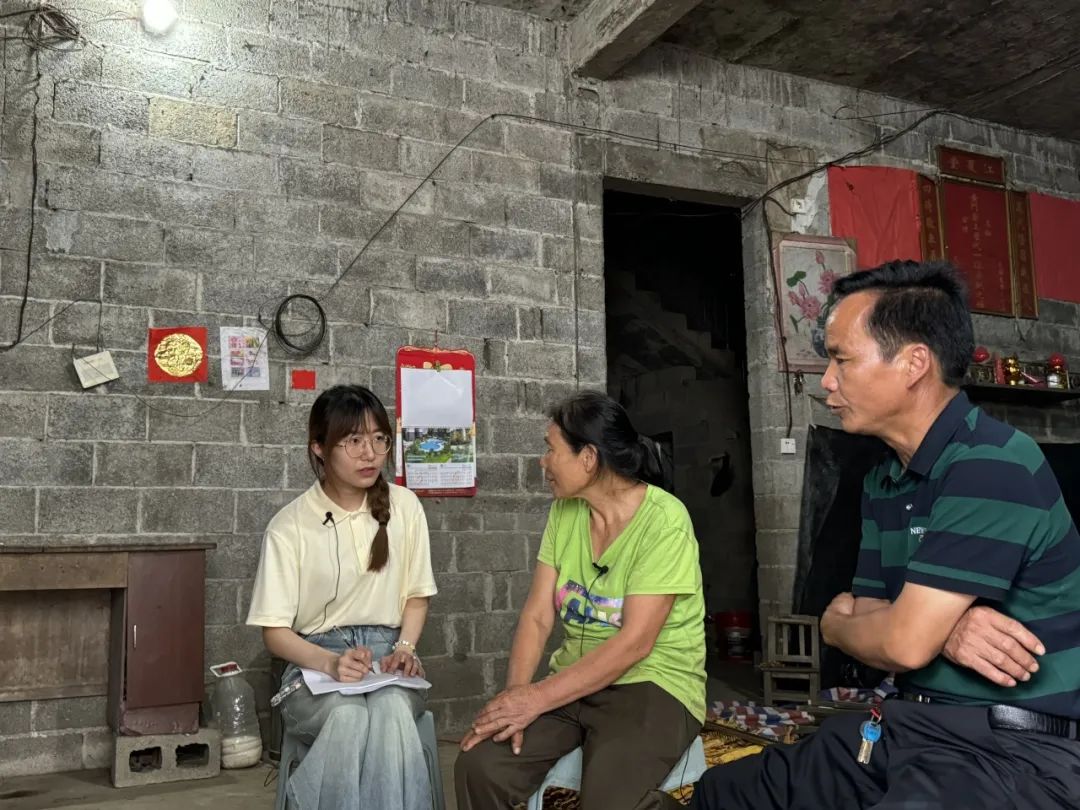 ▲硕士生王琪访谈巴龙村党支部书记黄建海