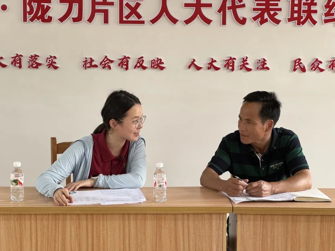 ▲博士生陈冠锟访谈足荣镇党委书记吕明英