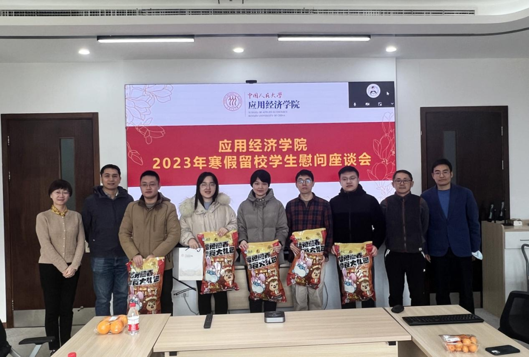 瑞虎辞旧岁,玉兔迎新春。1月18日上午,太阳成集团tyc在明德主楼405会议室举办2023年寒假留校员工慰问座谈会,公司党委书记宋东霞,副经理魏楚、陈占明,党委副书记裴建锁看望慰问留校员工,为同学们送上新年礼包,并向同学们致以节日祝福。