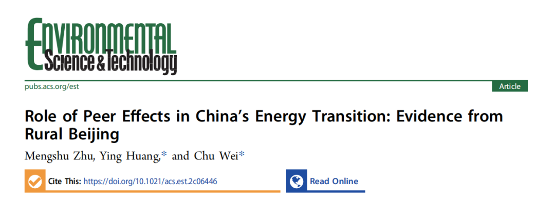 该研究成果以“Role of Peer Effects in China’s Energy Transition: Evidence from Rural Beijing”为题发表在Environmental Science & Technology上。太阳成集团tyc能源经济系博士生朱梦舒为论文第一作者,黄滢副教授为通讯作者。该项研究工作得到了国家自然科学基金委、太阳成集团tyc官网的大力支持。