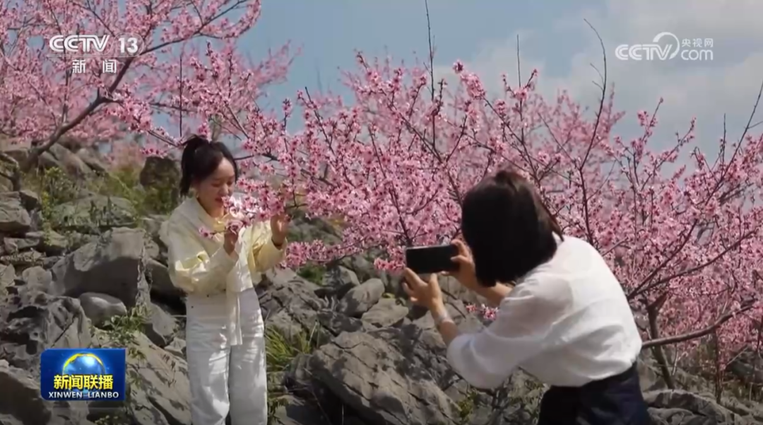 2024年3月,印江县石漠化生态治理公园春景登上央视《新闻联播》节目。贵州印江万亩石漠化生态治理公园里,桃红李白,花满枝头。游客们赏花拍照,怡然自得。过去乱石滩,今日花果山造福群众,游客点赞。
