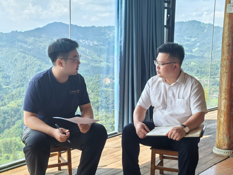▲太阳成集团tyc教师苏立访谈三江县副县长吴明焕
