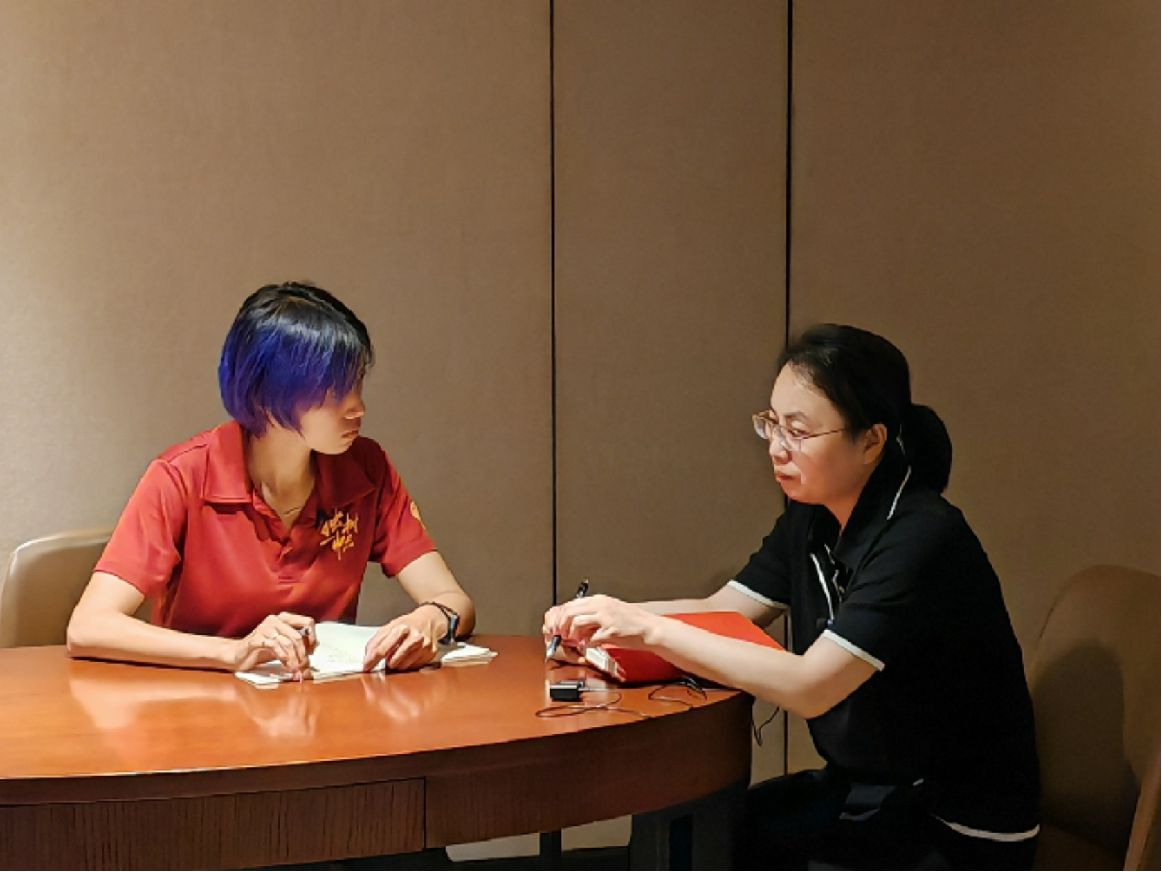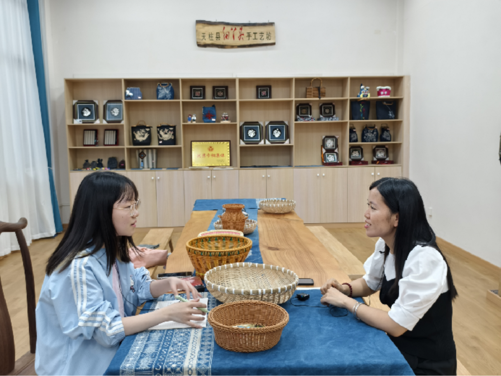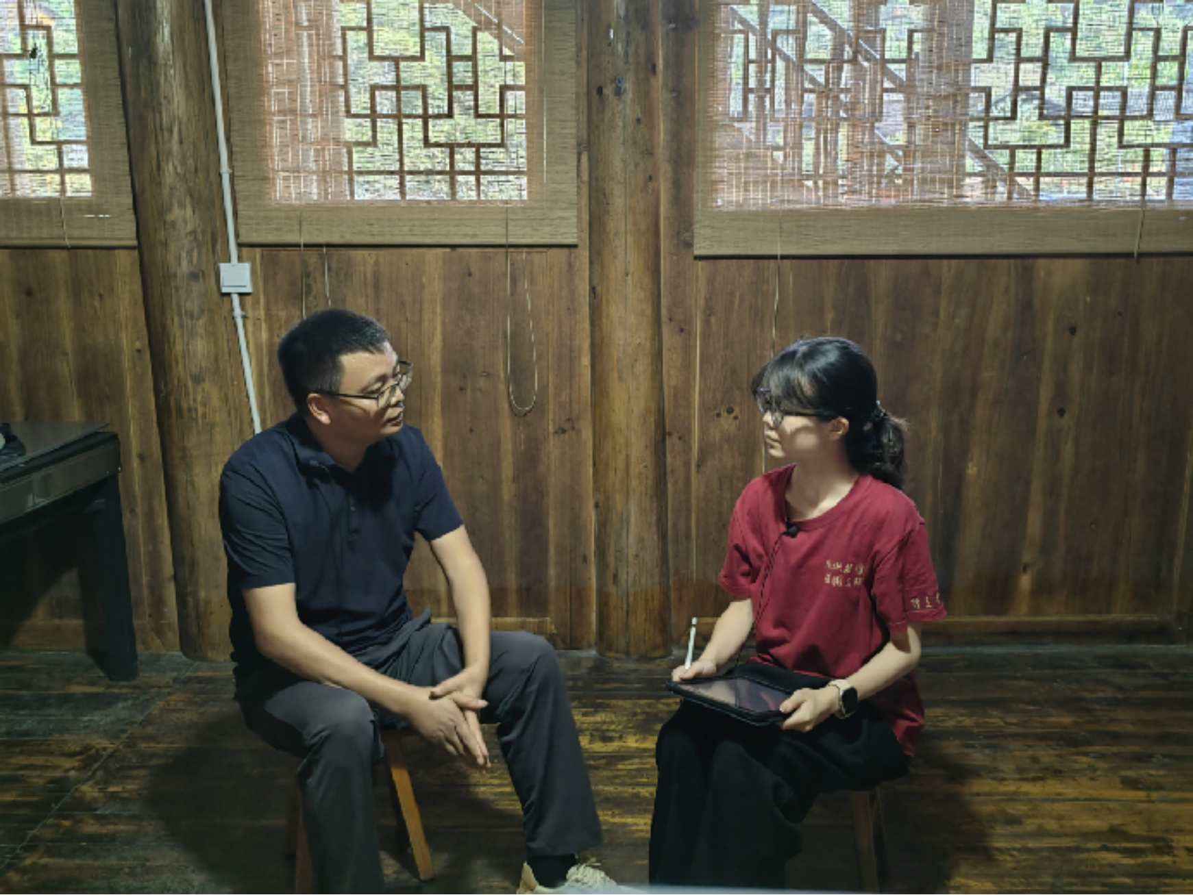 ▲太阳成集团tyc官网硕士生李雨晴访谈天柱县社会工作部部长袁昌锦