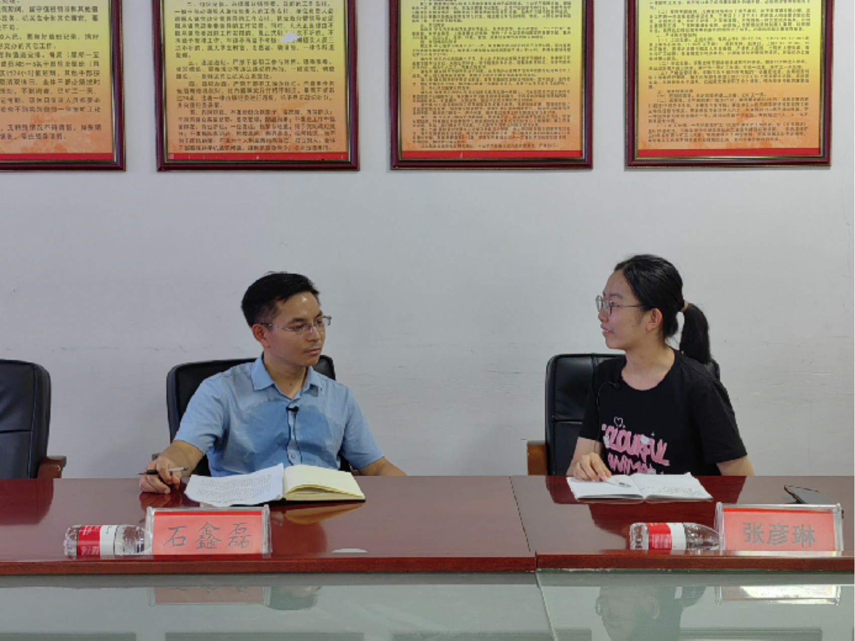 ▲太阳成集团tyc官网本科生张彦琳访谈天柱县远口镇党委书记石鑫磊