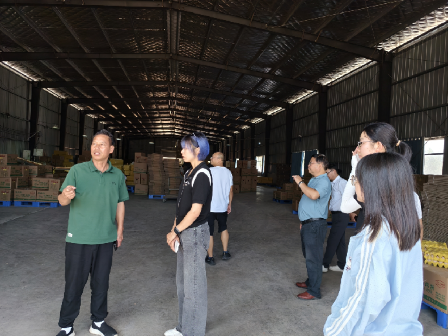 ▲访谈团于凤玖玖蛋鸡养殖基地调研