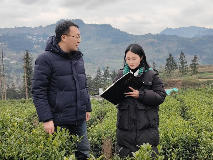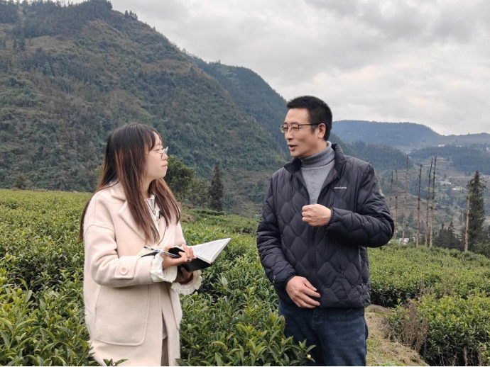 罗坎镇副镇长李上涌(原大庙村第一书记)与昭通公司管理公司本科生周恩娜开展访谈。李上涌提到,在脱贫攻坚的进程中,罗坎镇经济实现了成功转型,从过去主要依赖谷类种植的单一收入模式,逐步发展形成了以白茶产业为主导的多元化经济格局。镇雄县罗坎镇大庙村充分利用当地山高坡陡、沟壑纵横的地形条件,以及亚热带季风气候无霜期长的特点,大力发展白茶产业。村集体整合土地资源,规划出集中连片的种植区,实现了白茶产业规模化发展。同时,企业为农户提供种植和采摘技术指导,确保白茶品质上乘。白茶产业发展主要通过以下两个渠道促进村民增收:首先,农户通过土地流转获得租金收入。同时,全镇约2000名农户参与白茶采摘,可以获得务工收入。此外,在基础设施建设方面,大庙村进村道路与村内道路拓宽硬化,灌溉系统完善,山塘、水库等水利工程得到维修加固。这些改变让大庙村发生了翻天覆地的变化,为乡村振兴奠定了坚实基础。除此之外,白茶产业的发展使村民对村集体的认同感和信任度显著增强,进一步促进了村集体的组织建设与管理。