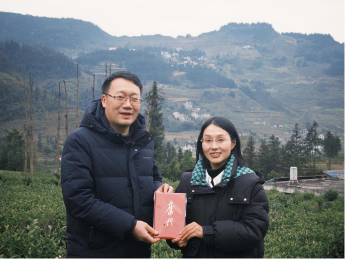 ▲昭通公司马克思主义公司成冬梅老师对镇雄县农业农村局副局长龚海访谈后赠书留念