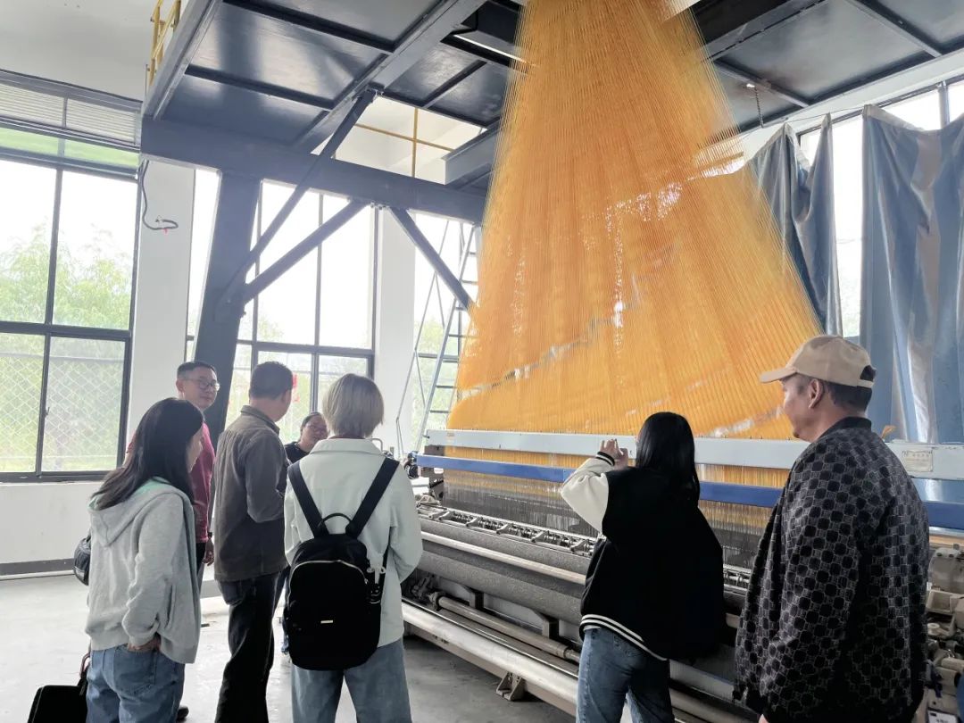 ▲访谈团在茶巴拉卓玛民族服饰农牧民专业合作社调研