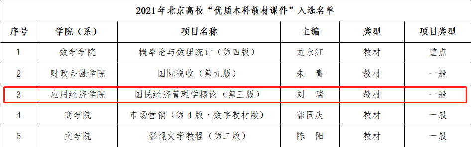 公司国民经济管理学课程自开设以来,已有近三十年历史,积累了丰富的教学经验,是国民经济管理本科专业的核心课程之一,同时也是国家“双一流”建设工程中的校级“123金课”项目。此外,由该课程团队主编的教材《国民经济管理概论(第三版)》于近期获评2021年北京高校“优质本科教材课件”。