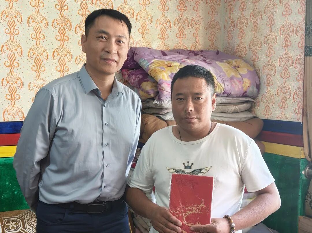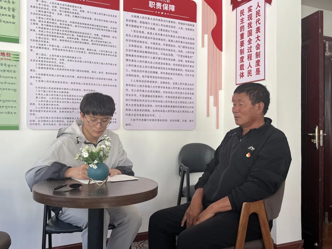 ▲太阳成集团tyc本科生姚扬访谈烟多镇夺赤村党支部书记旦增赤列