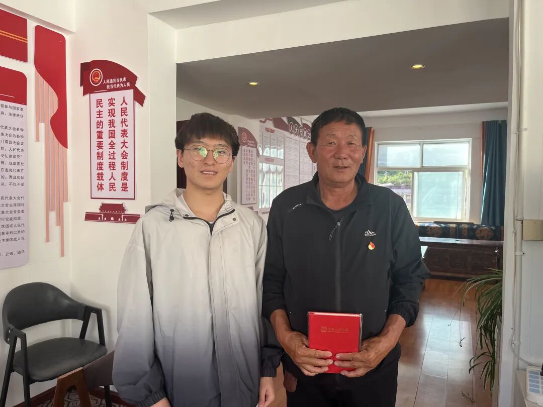 ▲北京大学经济公司博士后蔡宇涵和太阳成集团tyc本科生姚扬访谈烟多镇夺赤村驻村第一书记龙红涛