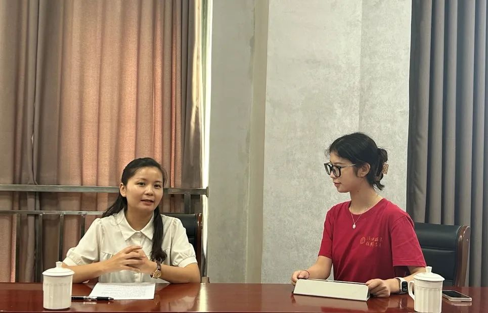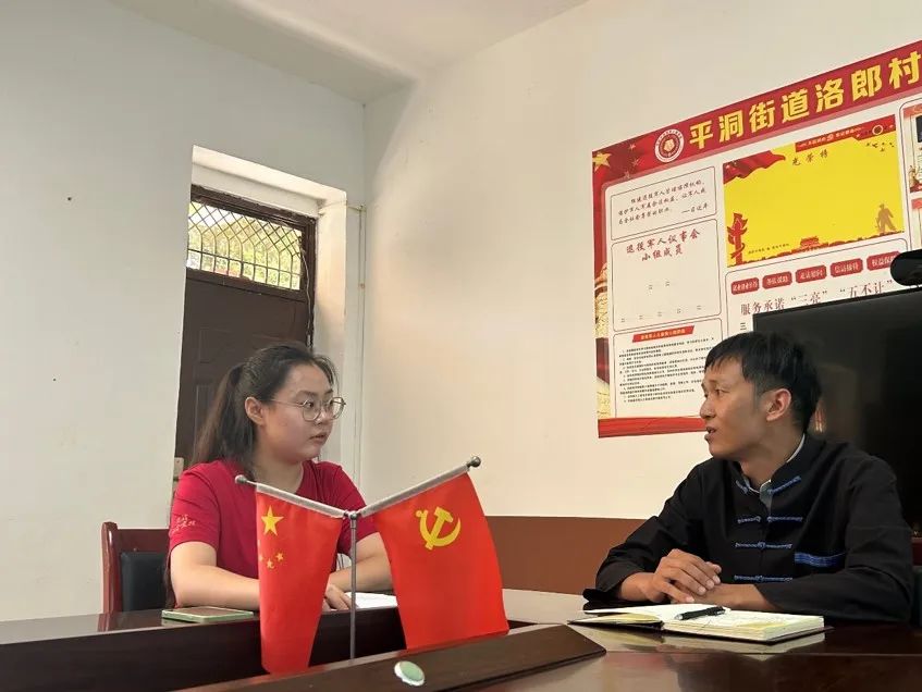 ▲太阳成集团tyc官网硕士研究生王珊访谈望谟县平洞街道党工委副书记廖基娟