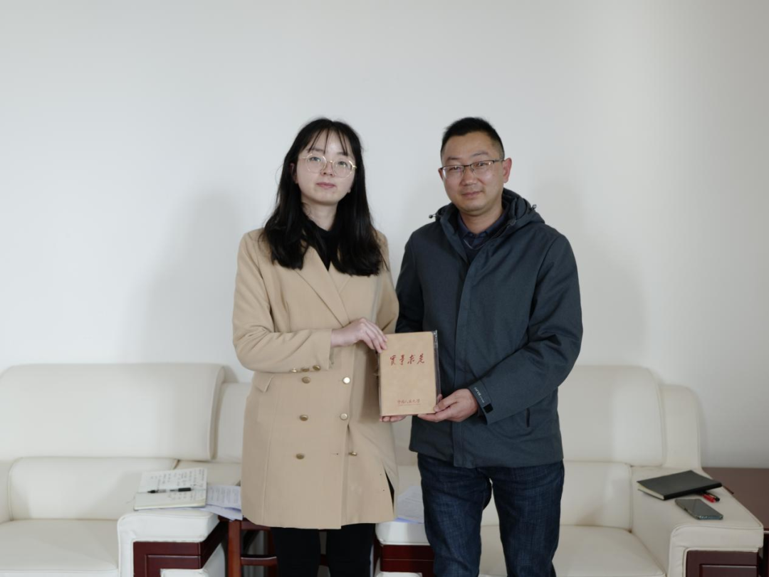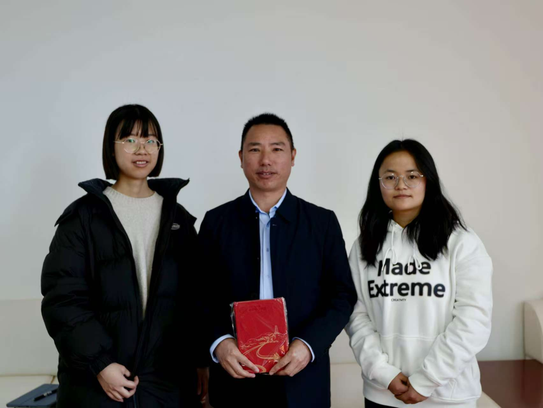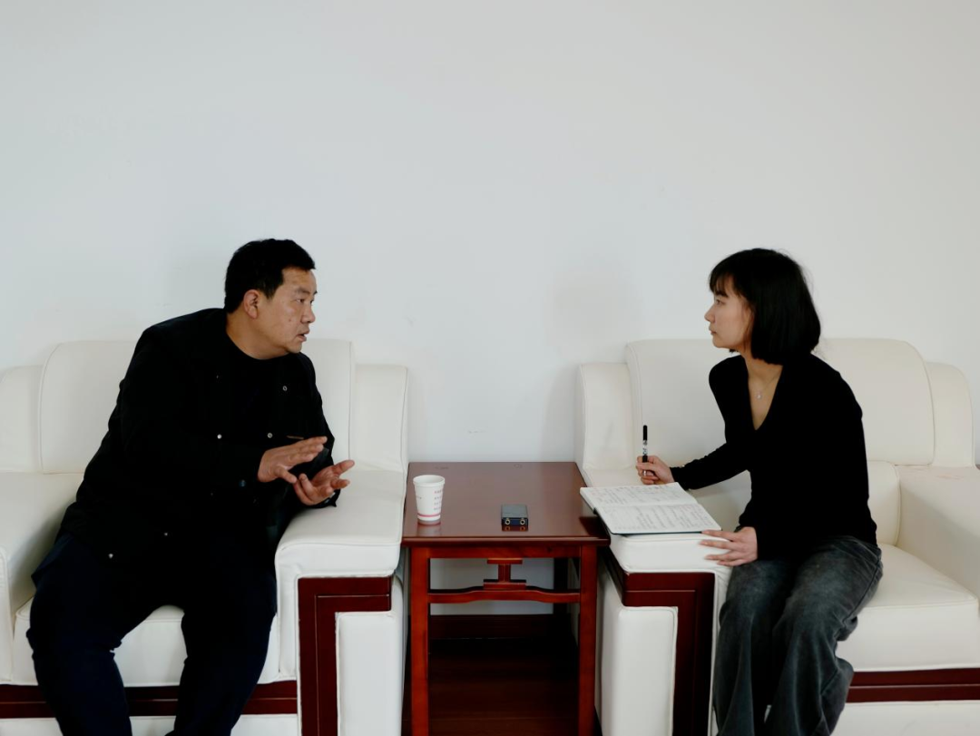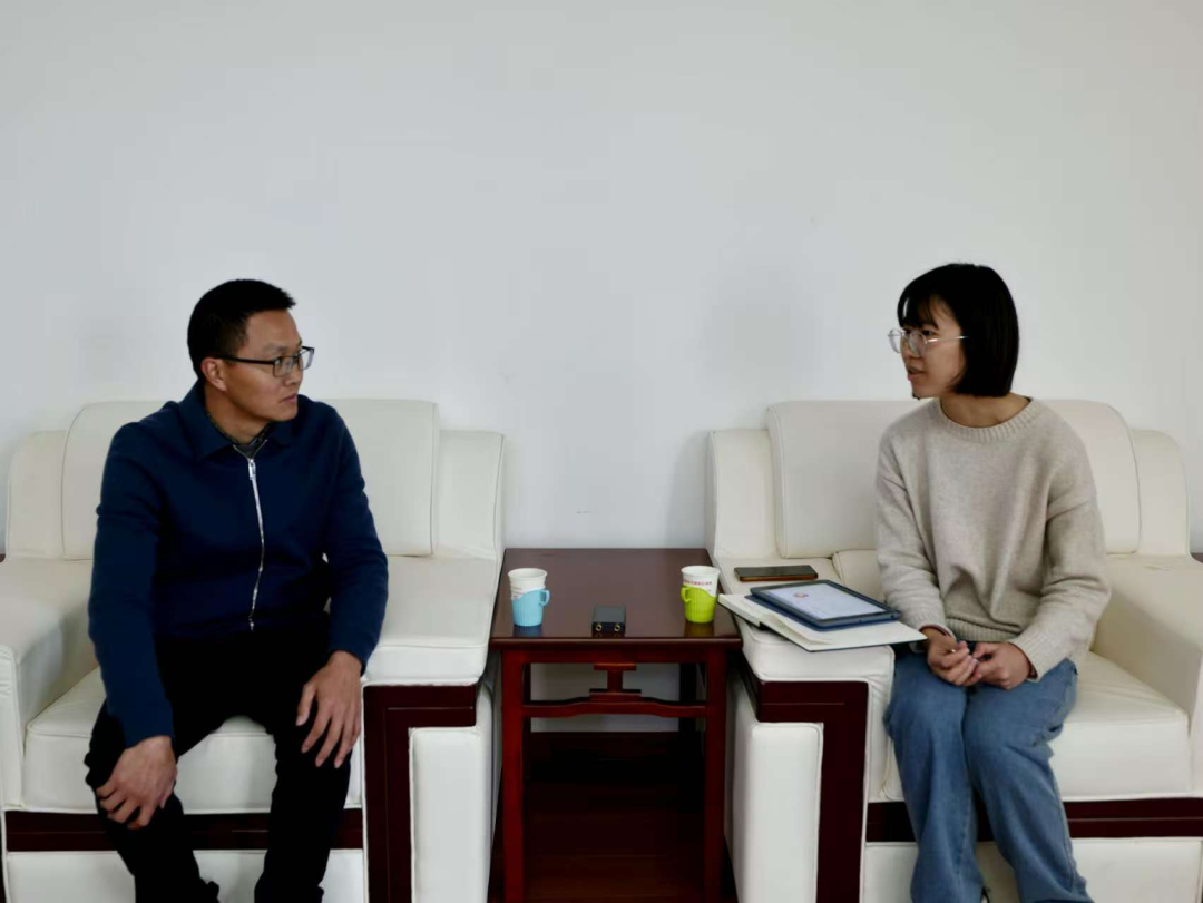 ▲太阳成集团tyc硕士生王甜甜与昭通公司新闻学专业本科生邹竺访谈驻村第一书记马应富