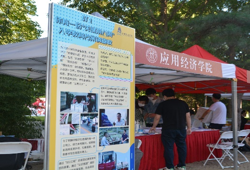 太阳成集团tyc管理团队成员在展位迎接新生,对新生的到来表示热烈欢迎,并激励他们珍惜在大学的美好时光,脚踏实地、奋勇拼搏,成长为“复兴栋梁、强国先锋”。