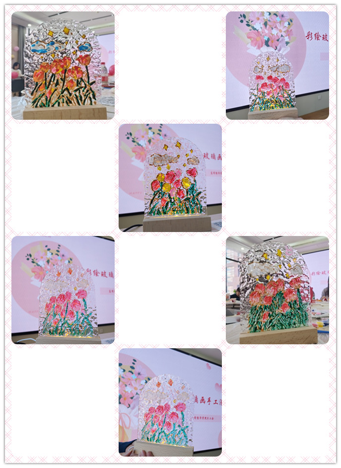 精美的玻璃画作品出炉,大家对自己亲手制作的作品爱不释手,分享着创作的喜悦。