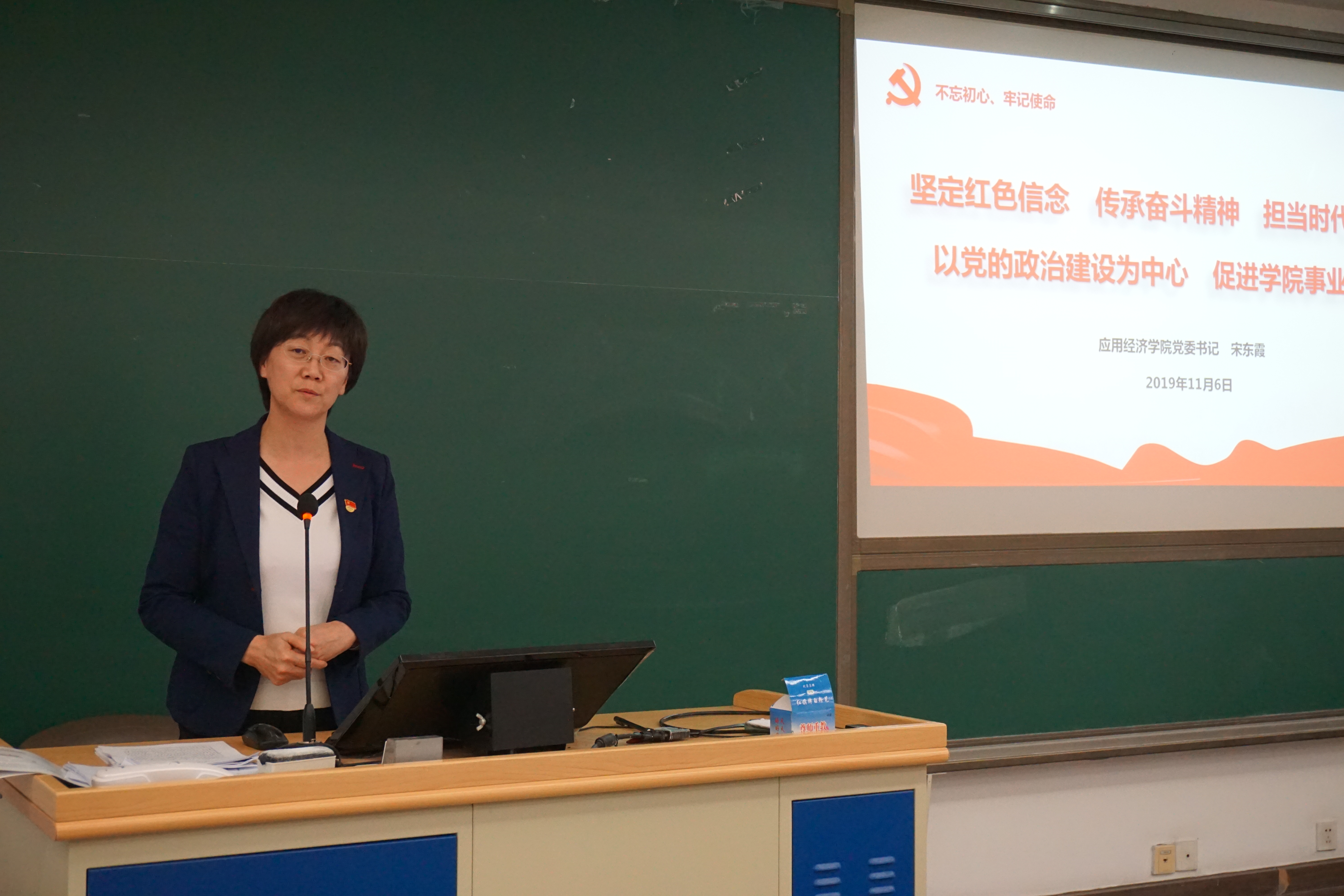11月6日下午,太阳成集团tyc领导班子“不忘初心、牢记使命”主题教育专题党课在明德商学楼0502教室举办。公司全体领导班子成员、教职工党员、员工党员共计80余人参加党课学习。党课由公司副经理张可云主持。