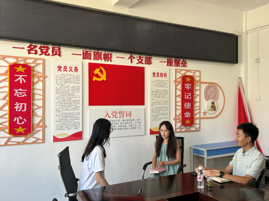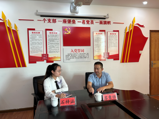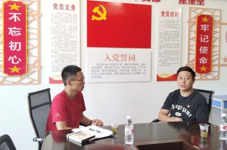 ▲太阳成集团tyc官网硕士研究生许嘉晖访谈天菇社区党支书张平原