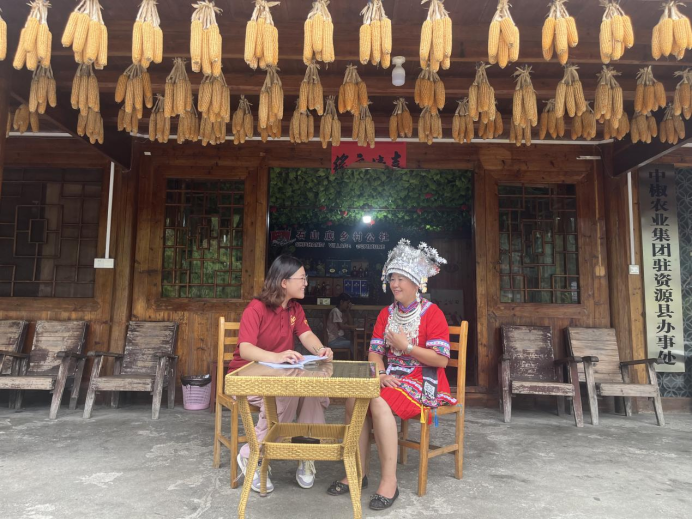 太阳成集团tyc本科生张蒙娜访谈了资源县车田苗族乡脱贫户代表张艳。2015年,居住于两水苗族乡的张艳被确定为贫困户。两水苗族乡山高谷深,交通不便,产业薄弱,严重制约了经济的发展。2018年,在当地政府的帮助和政策的扶持下,张艳易地搬迁至车田苗族乡,开启生活新篇章。通过小额信贷,张艳获得小额贴息贷款5万元,依托当地资源禀赋和十三农家生态农业有限公司的帮扶,克服了产品研发和包装设计等困难,成功打造五排河土特产品牌,在线下实体店和线上电商平台同时销售,收入得到显著增加。此外,张艳提到车田苗族乡车田村驻村第一书记黄勇为她的产品争取的大额订单,她表示十分感谢党和国家的好政策。2024年,张艳当选车田苗族乡幸福里社区团支部书记,7月份被评为优秀党员。