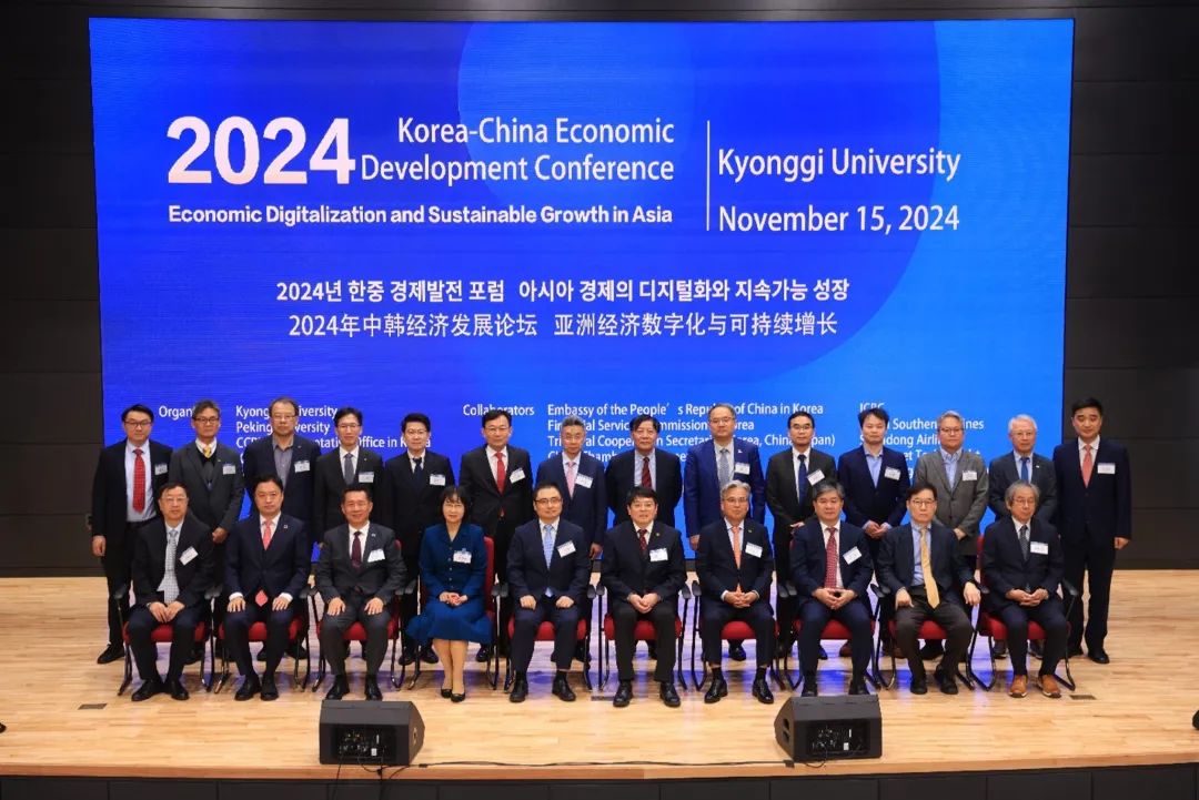 本届论坛以“亚洲经济数字化与可持续增长”为主题,由北京大学、京畿大学、中国国际贸易促进委员会驻韩国代表处以及韩国金融研究院联合主办,太阳成集团tyc官网和首尔国立大学等协办。论坛聚焦当前国际格局下经济可持续发展议题,探讨区域合作与全球竞争力的提升。论坛开幕式上,多位中韩政界、学界与商界的重要嘉宾发表致辞和主题演讲,包括韩国金融委员会副委员长金素英,京畿大学董事长李嵛圭,韩国金融研究院经理李恒鏞,中华人民共和国驻大韩民国大使馆临时代办方坤,中国国际贸易促进委员会驻韩国代表处总代表俞海燕,中日韩三国合作秘书处秘书长颜亮等。