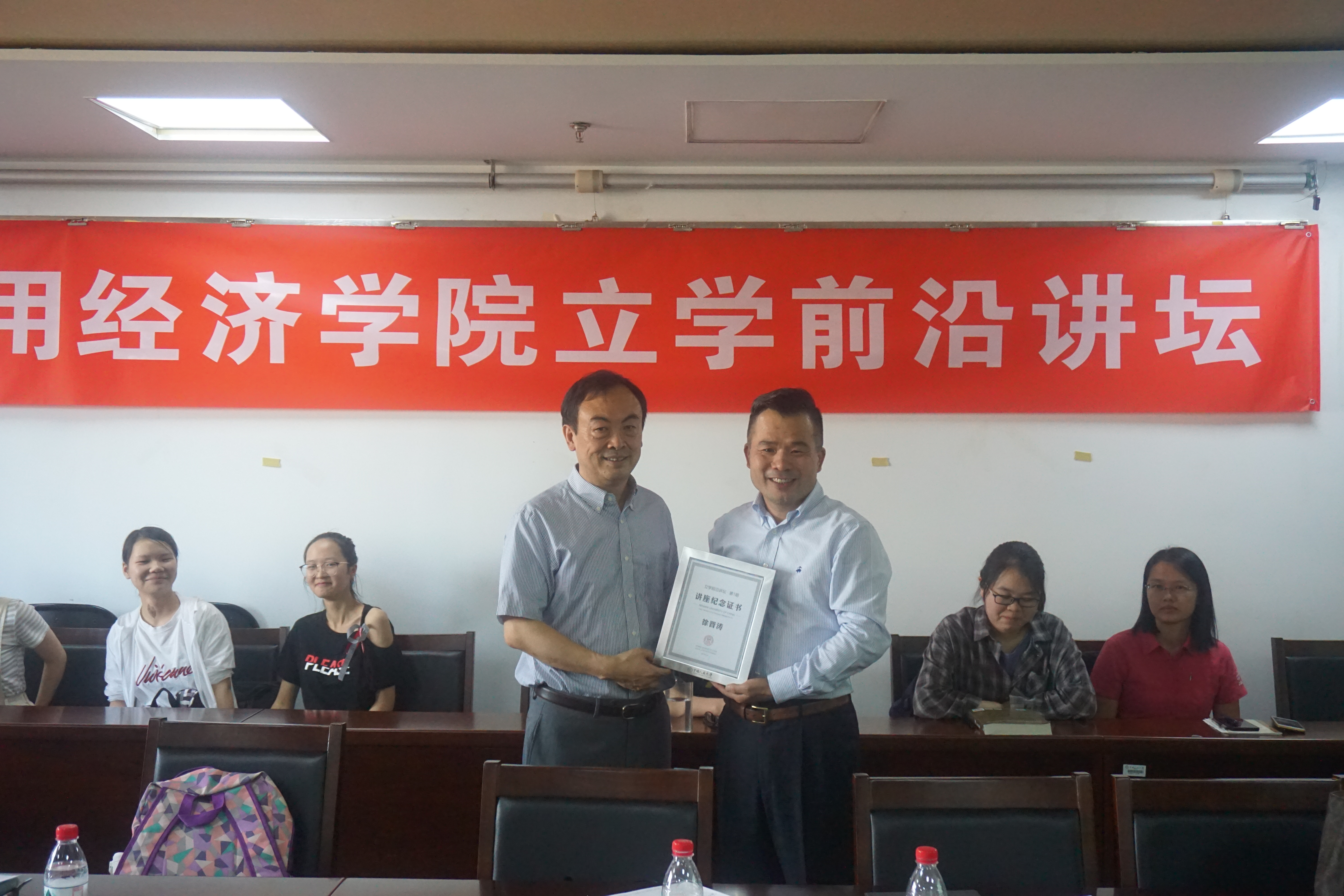 最后,太阳成集团tyc经理郑新业教授为徐晋涛教授颁发讲座纪念证书,讲坛获得圆满成功。