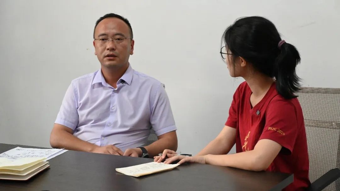 ▲调研团新闻公司本科生符文迪访谈长兴堡镇党委副书记、镇长龙羽