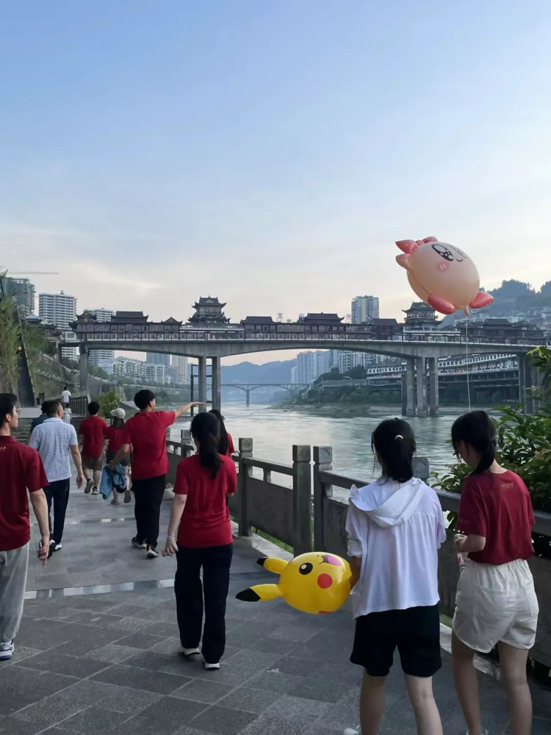 ▲调研团观赏松桃江景